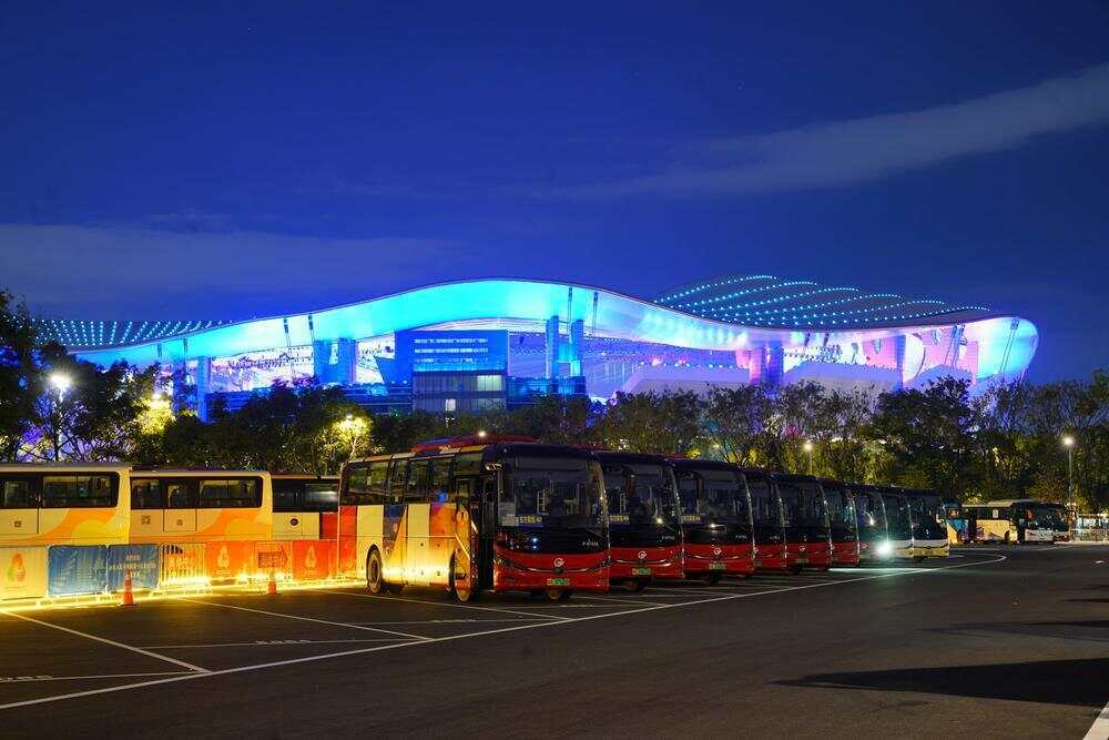 开幕式当时,全面启动三级调度指挥体系,覆盖18个现场点位、5个远端集结点及7个奥体停车场,现场调度服务团队人员共380人。运输指挥高效有序,现场保障执行有力,300余辆大巴、1.08万重点嘉宾客群全部安全、有序、准时到达和离场。