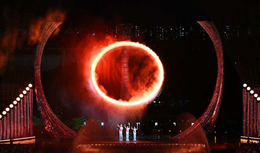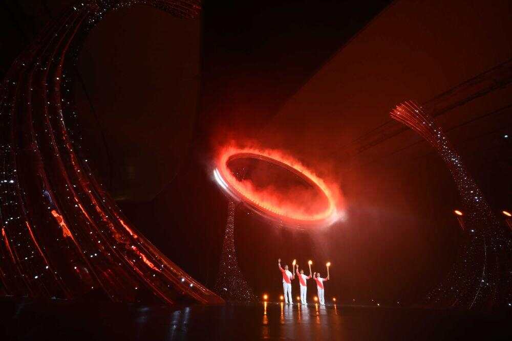 引天之光,燃海之火。沉睡亿万年的“深海之冰”化作跃动的“同心之火”,载人飞行器载着火炬翱翔于湾区天际。粤港澳三地健儿共同点亮主火炬,“同心圆”辉映中国梦,华夏儿女并肩携手,共赴未来。