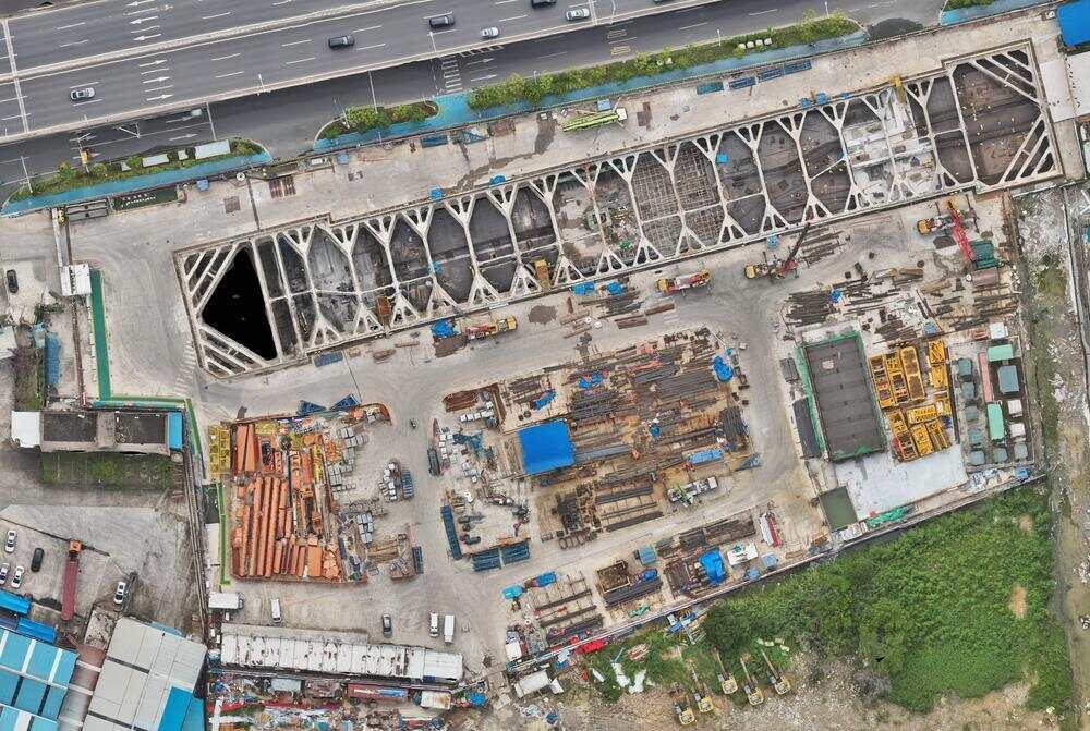 此外,建设者们还对基底软弱地基实施搅拌加固,既有效提升基底承载力的稳定性,又防止了岩溶水通过软弱基底层涌出,避免地基出现空洞和沉降。为确保基坑干燥的作业环境,建设者们通过在特定位置设置回灌井等多种降水方法,将基坑内部地下水位精准降低到开挖面以下1米。