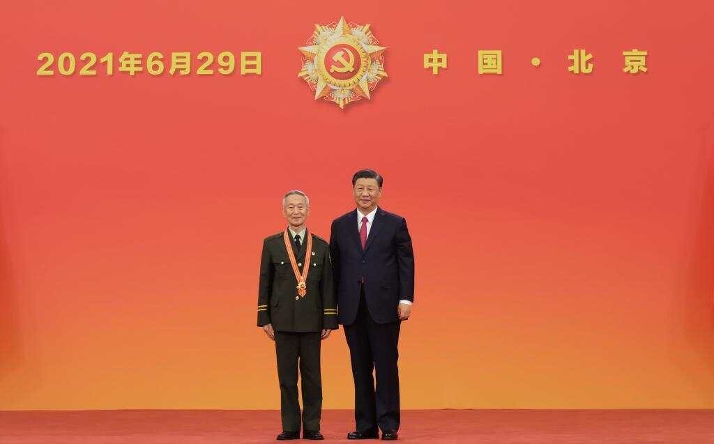 2021年6月29日,习近平总书记向“七一勋章”获得者崔道植颁授勋章。