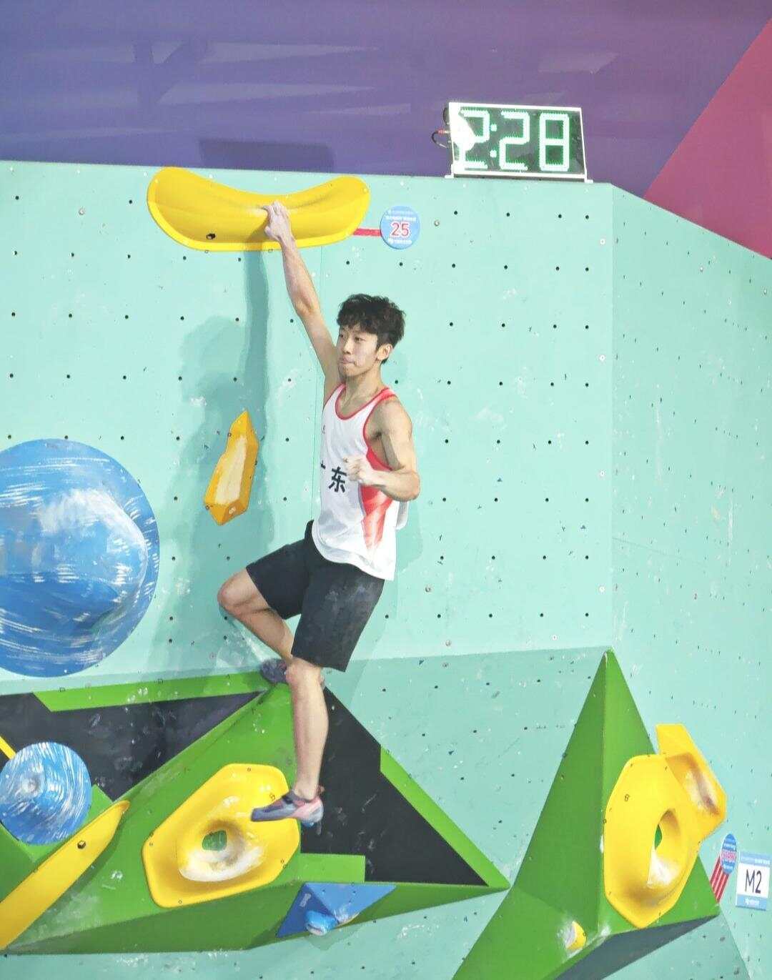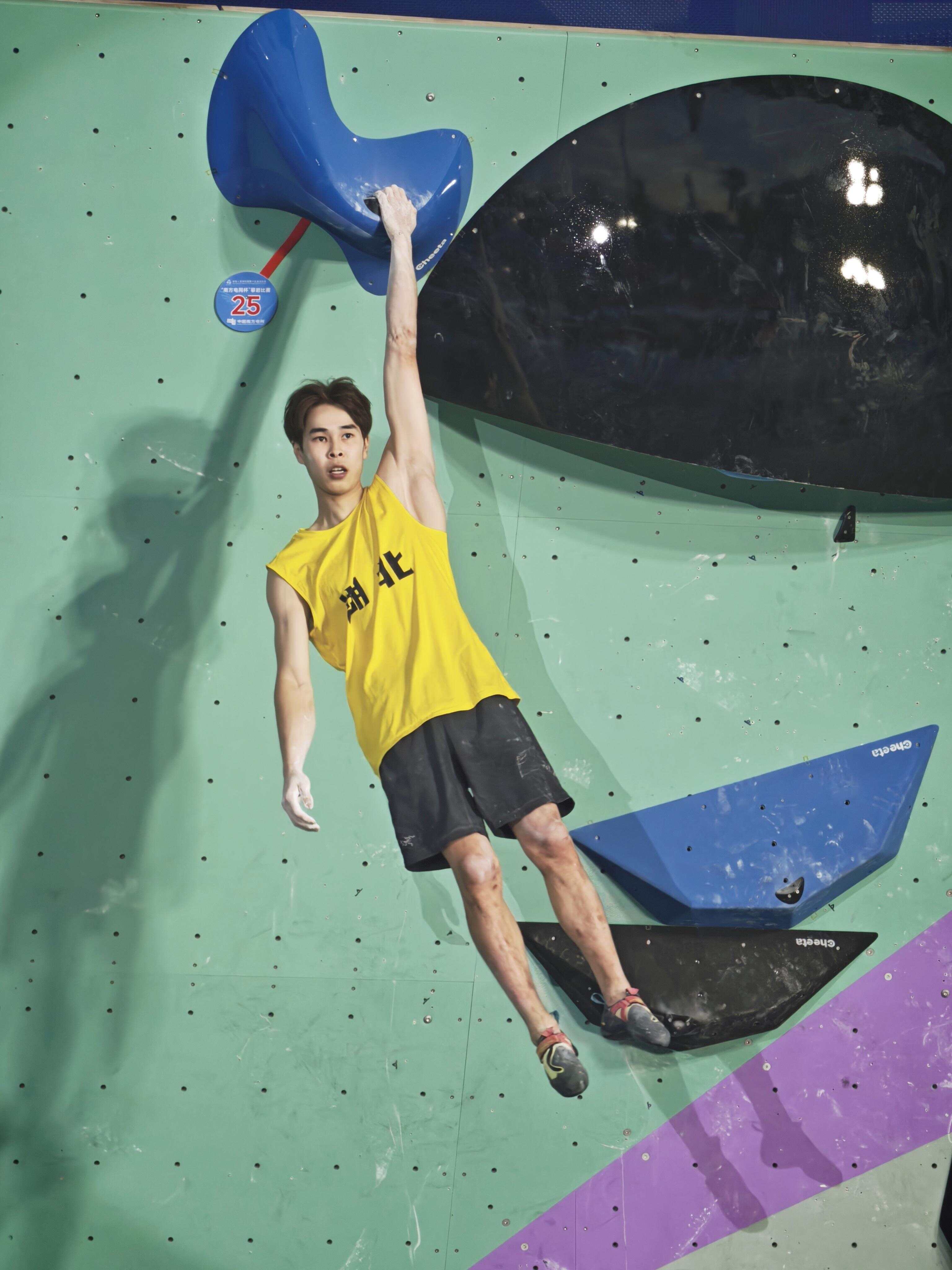 11月15日下午,第十五届全国运动会攀岩项目的男子攀石决赛在广州大学城体育中心极限运动中心精彩落幕。