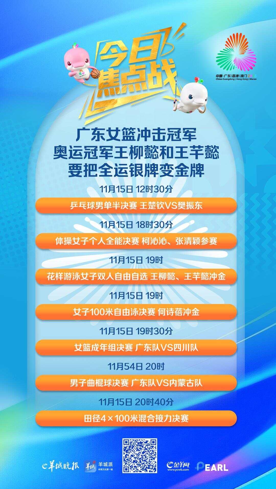 11月15日,十五运会正赛迎来第六个比赛日,运动员们将在游泳、田径、篮球、体操、花样游泳等项目上角逐31枚金牌。