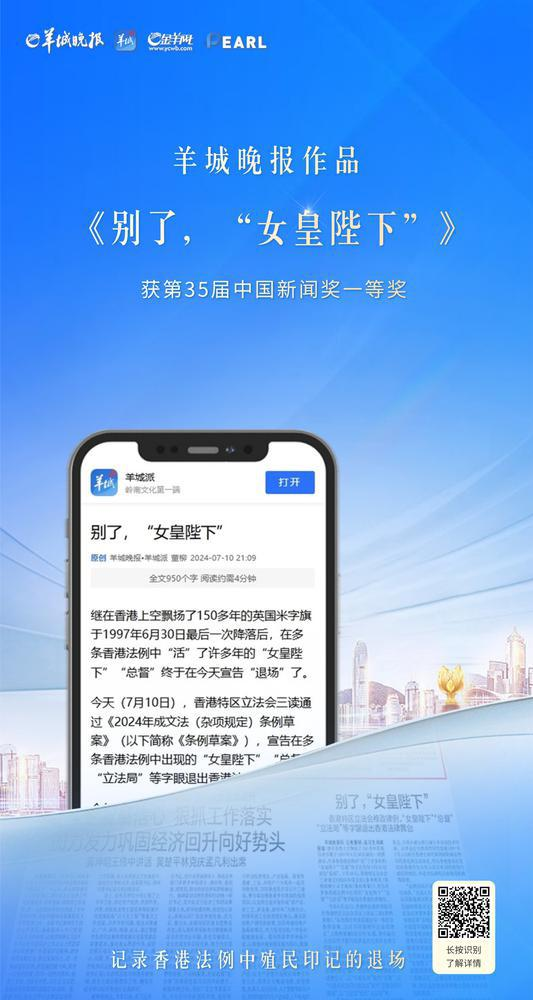 《别了,“女皇陛下”》(点击链接跳转查看)(作者:董柳;编辑:林洁、黄丽娜、陈婉允)记录了2024年7月香港特区立法会三读通过《2024年成文法(杂项规定)条例草案》,将存在了许多年的“女皇陛下”“总督”等字眼从多条香港法例中删除的历史性一幕。报道捕捉住了香港回归祖国以来在法律制度上细微且重大的变化,宣告了香港推进法律制度“去殖民化”的历史进程,见证了香港法例中殖民印记的黯然退场和“一国两制”的稳步推进。报道被光明网、中新网等众多媒体(平台)转载。
