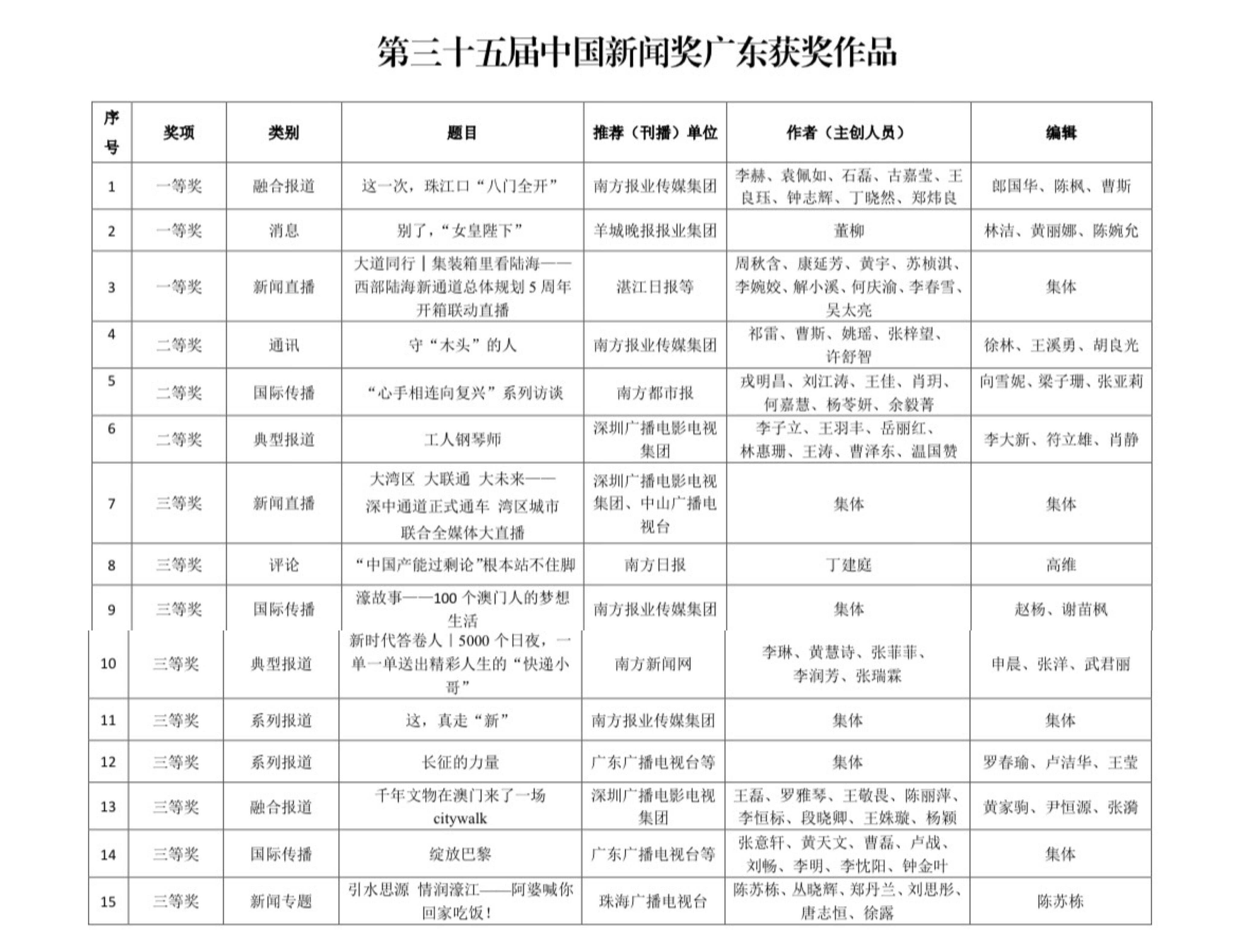 广东15件作品获第35届中国新闻奖,创历史最好成绩