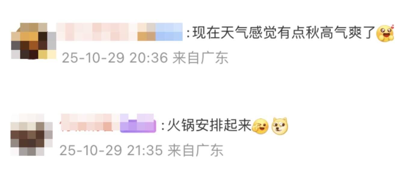 天气稍稍转凉?太好了!网友们纷纷表示,周末打边炉可以约来了!还有不少网友感叹,拥有天然免费空调的日子真的太幸福了!