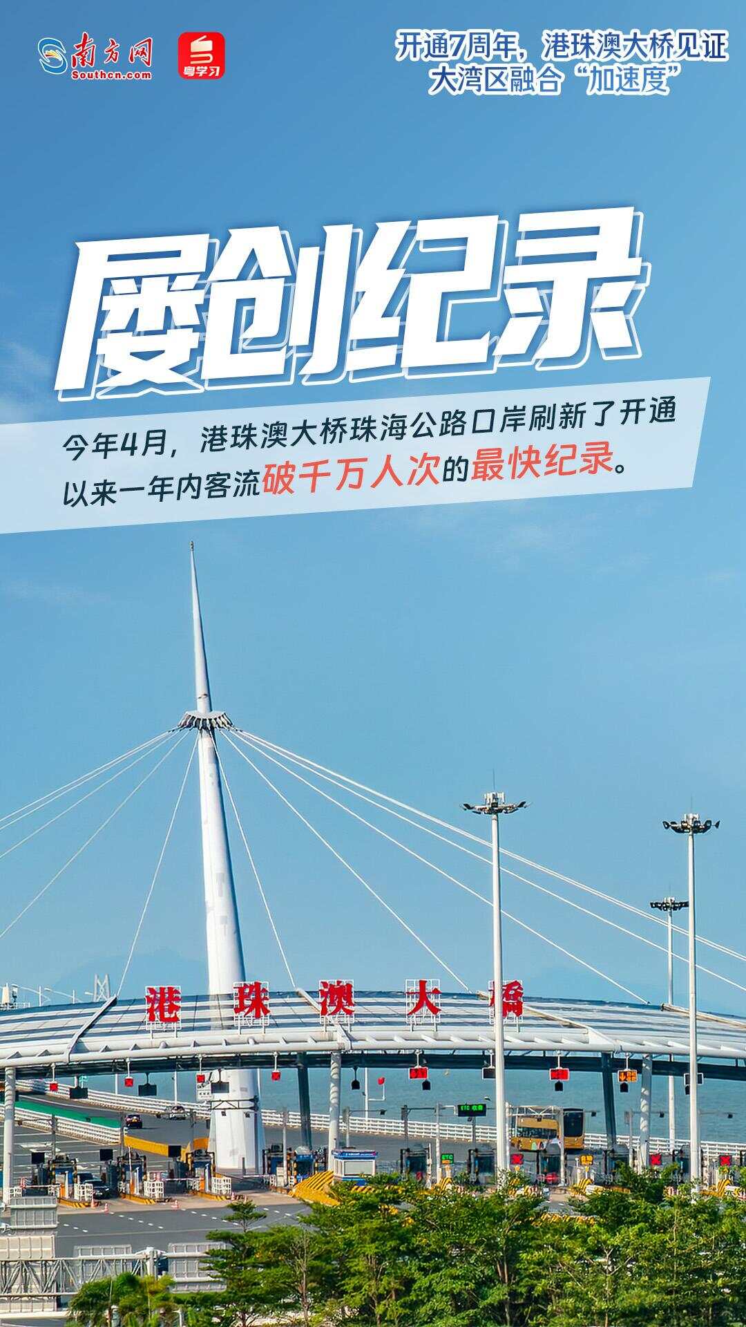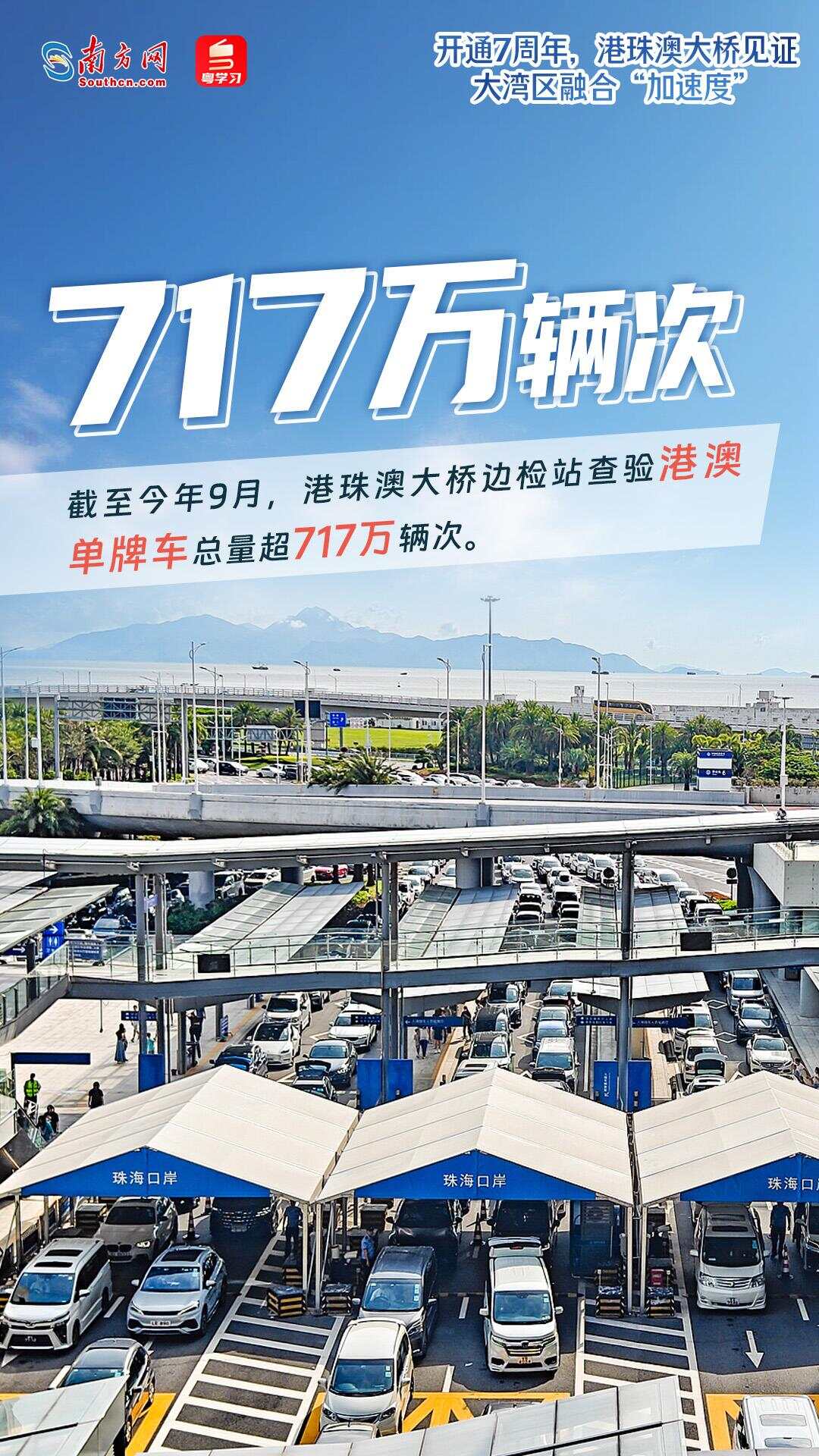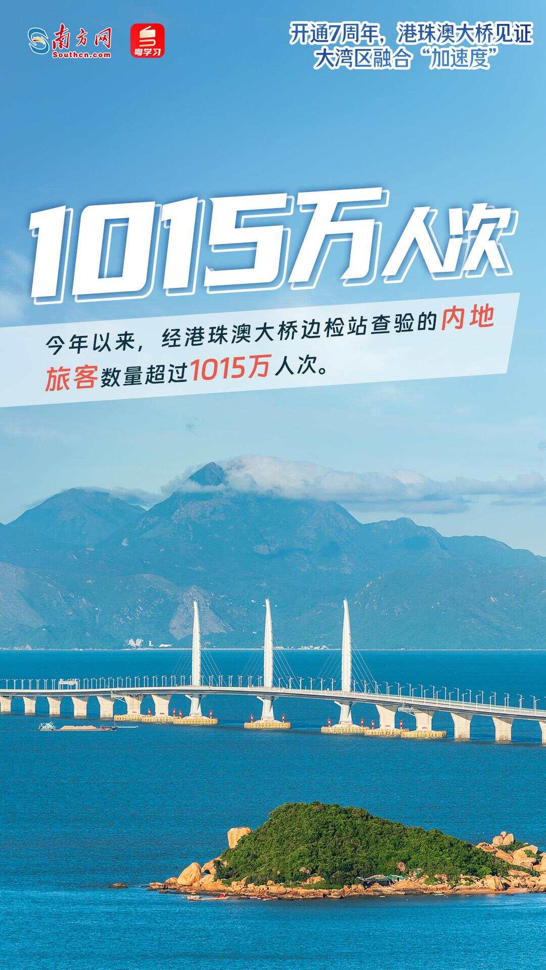 在港珠澳大桥的连接下,粤港澳三地车程大幅缩短、居民出行更加便利、物流运输成本明显降低:港珠澳“1小时生活圈”形成;经港珠澳大桥珠海公路口岸往来粤港澳三地的旅客数量已超9334万人次,车辆超1942万辆次;日均超160万个包裹经港珠澳大桥出口,通达全球……7年来,港珠澳大桥不断刷新着车流量和客流量纪录,车畅、人旺、货兴成为常态,有力促进了大湾区互联互通和高质量发展。