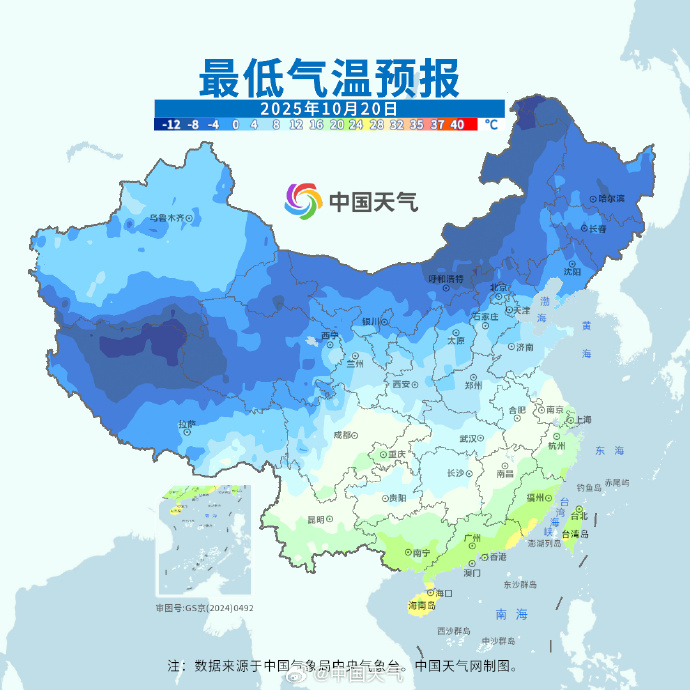 最低气温0℃线将位于华北北部至陕西北部、甘肃东部一带,最低气温10℃线则会在21日至22日南压至贵州南部、湖南中部、湖北中部、安徽中部一带。