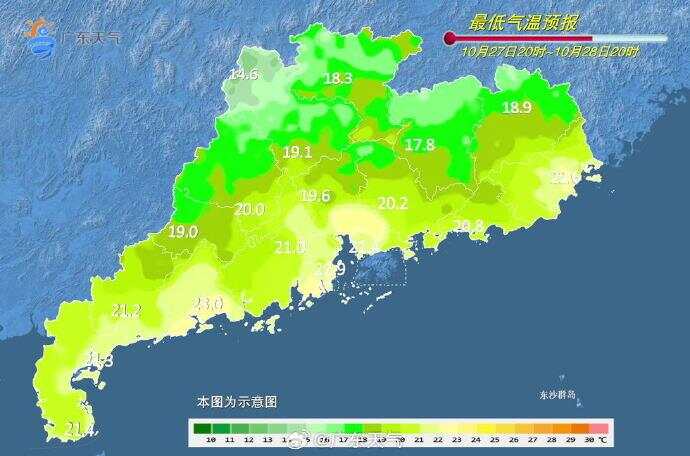 27-28日,南部沿海市县多云间阴天,局部有零星小雨,其余市县多云间晴天。最低气温:粤北市县16~18℃,南部沿海市县21~23℃,其余市县18~20℃。