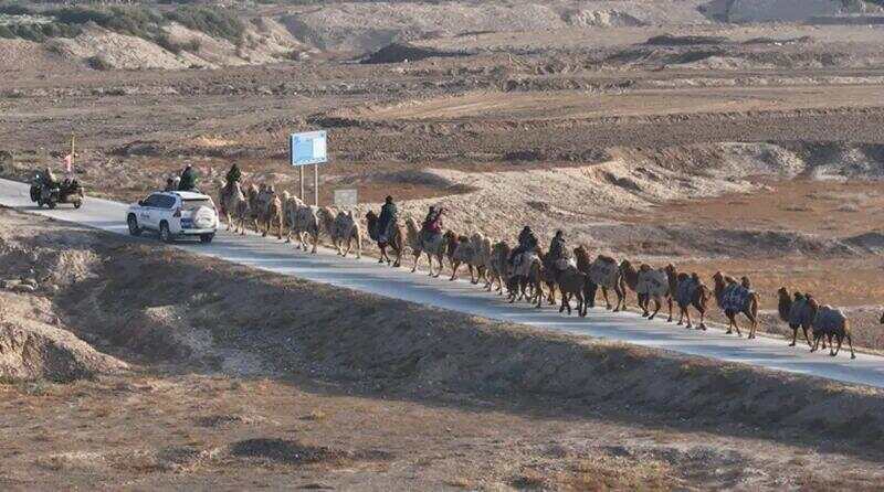 近日,甘肃张掖,一支骑着骆驼的旅行队走红。他们从新疆哈密出发,步行前往河南洛阳,已经走了60多天。队员们表示,他们想以徒步牵引骆驼的形式,体验并弘扬古老的丝路精神。