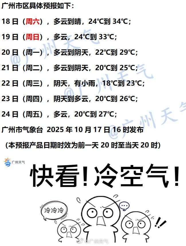 广东现在还穿着短袖短裤的朋友,下周终于可以加入降温群聊了!