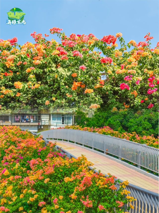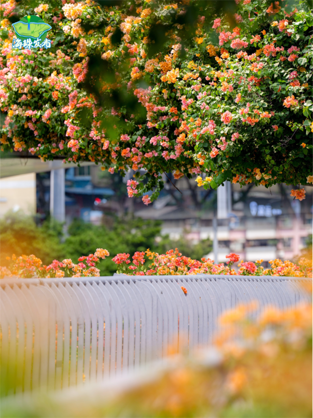 10月的广州,真的配得上“花城”这两个字,不用刻意寻找,“勒杜鹃花瀑”已经爬满了天桥、墙头和廊架,这份“抬头可见”的浪漫你发现了吗?