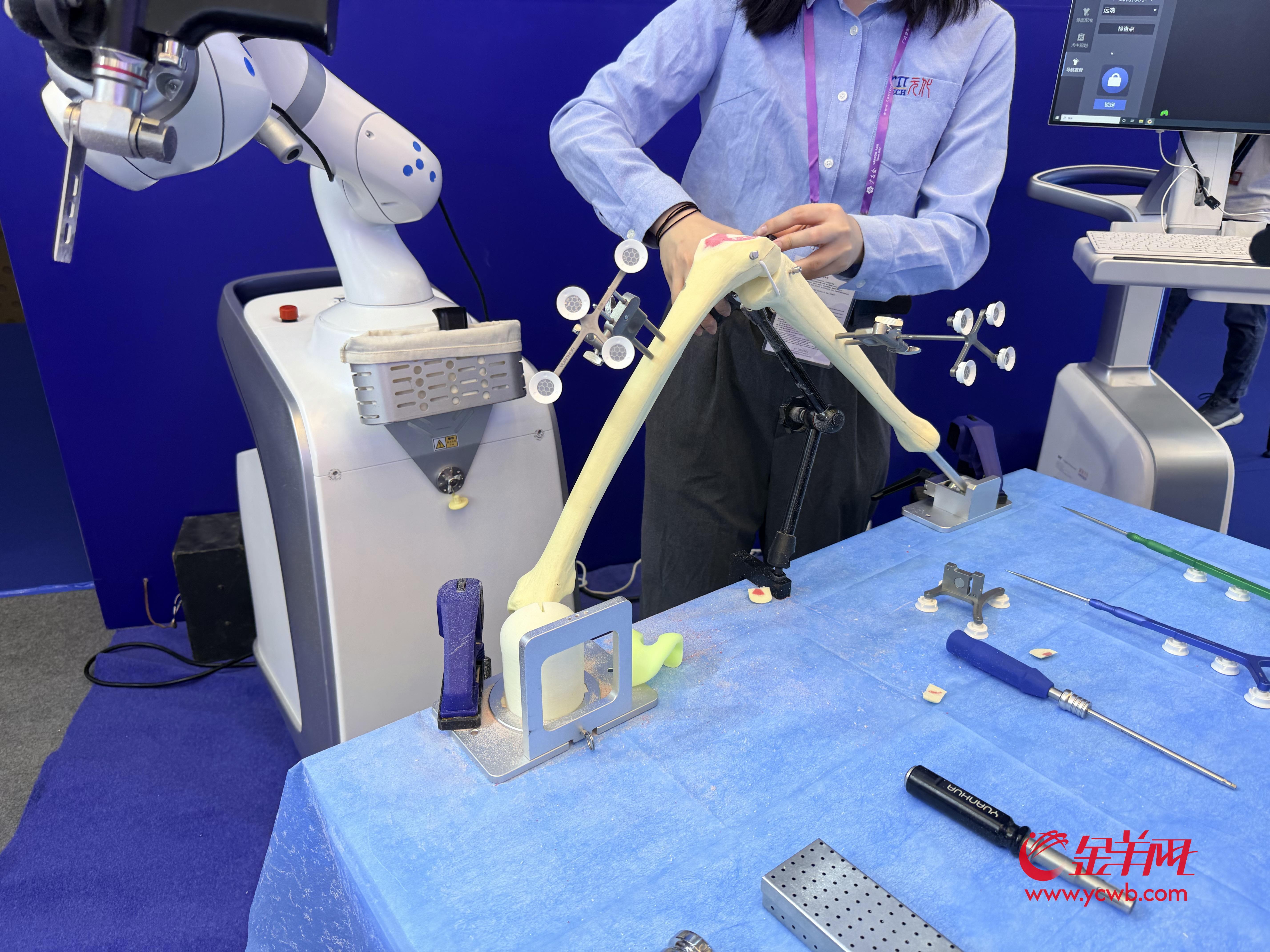 在元化智能展台,记者看到屏幕展示了一场在海拔4000米处完成的手术影像——在西藏比如县,一台锟铻国产机器人在机械臂精准引导下,辅助医生完成膝关节置换手术。