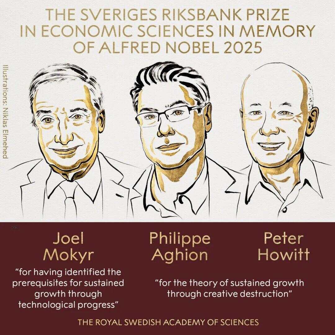 当地时间10月13日,瑞典皇家科学院宣布,将2025年诺贝尔经济学奖授予3名科学家:乔尔·莫基尔、菲利普·阿吉翁和彼得·豪伊特,以表彰他们“对创新驱动型经济增长的阐释”。