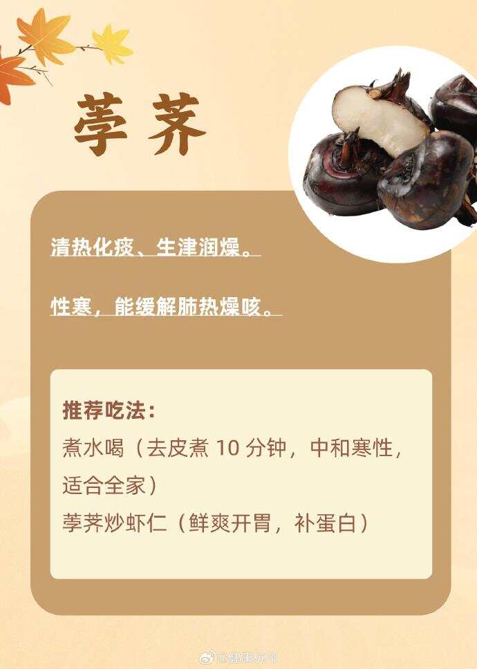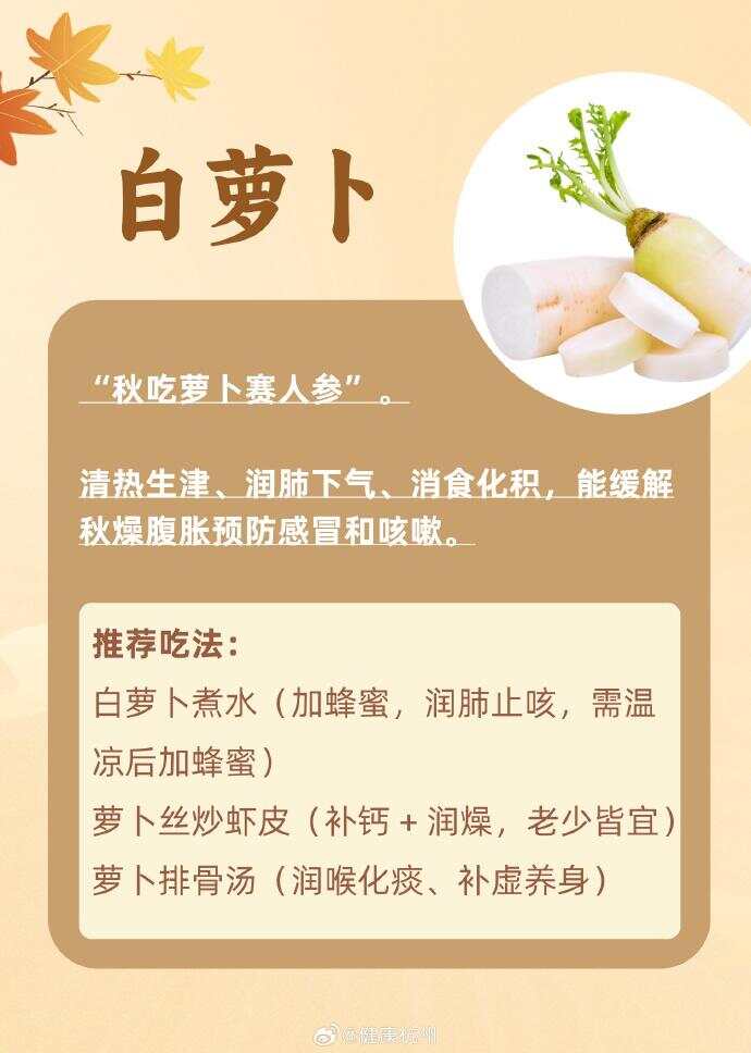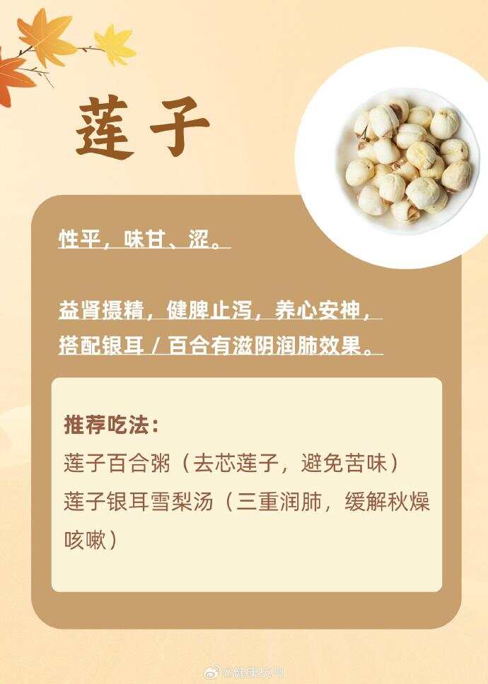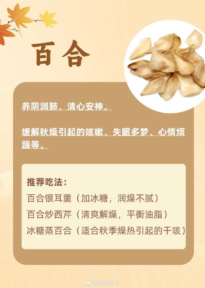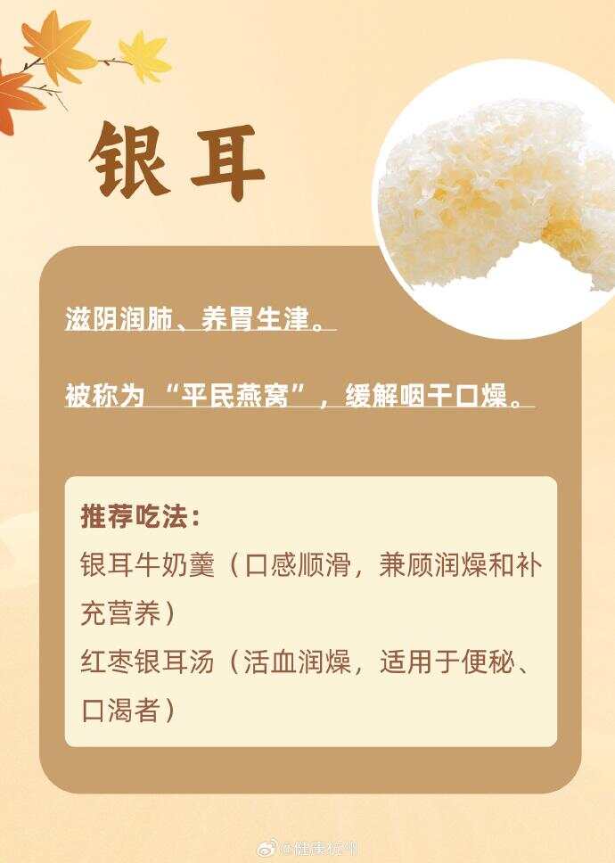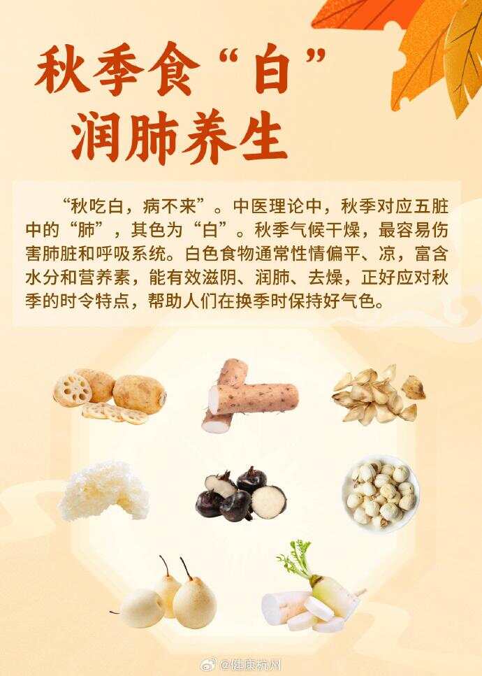 广州常年入秋时间在11月上旬。虽然秋季未到,但有秋季气候干燥的特征。白色食物通常性情偏平、凉,富含水分和营养素,能有效滋阴、润肺、去躁,帮助人们保持好气色。