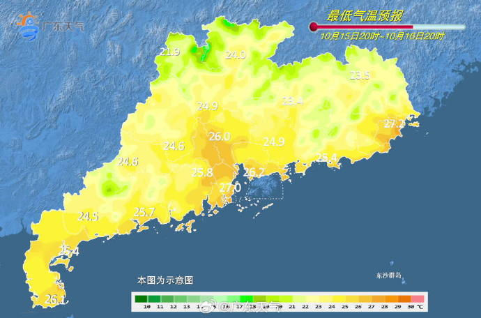 19日(周日)起,受中等强度冷空气影响,广东大部气温逐渐下降,不过由于基础气温较高,白天阳光下还是有点热,好在晨晚凉意渐显。以广州为例,本周最高气温普遍都在34℃左右,20日(下周一)白天最高气温降至30℃,早晨最低气温20℃左右。