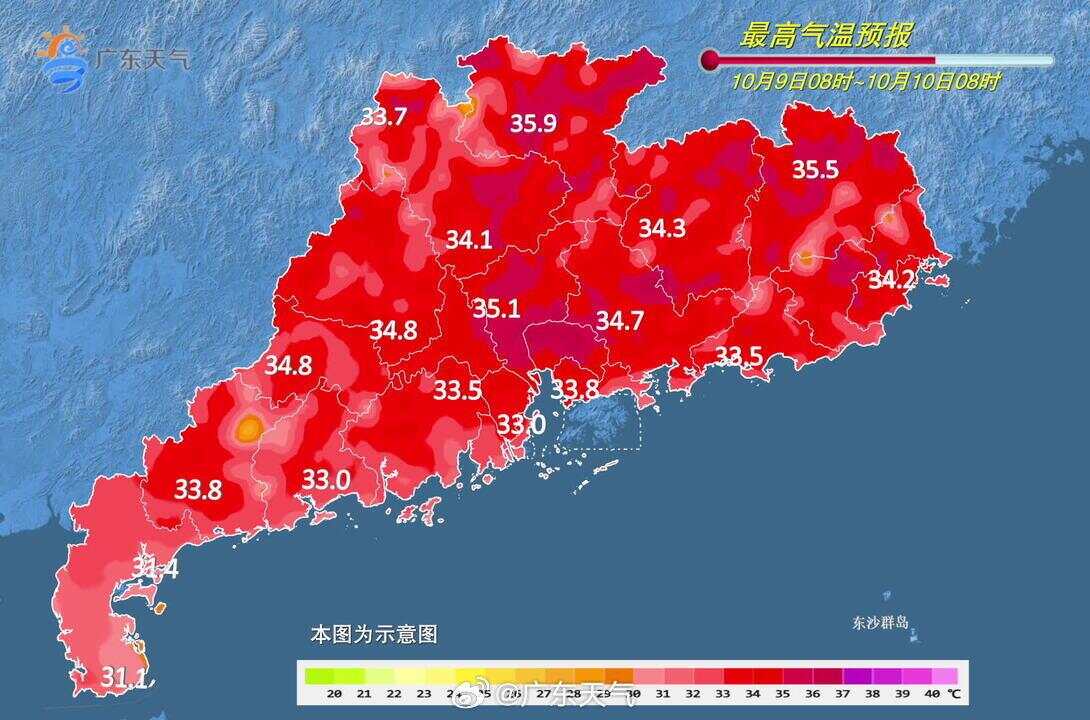 ◆预计9-11日,广东大部晴到多云为主,粤西多云间阴天有分散小雨。最高气温:粤西31~33℃,其余市县33~36℃,局部37℃。