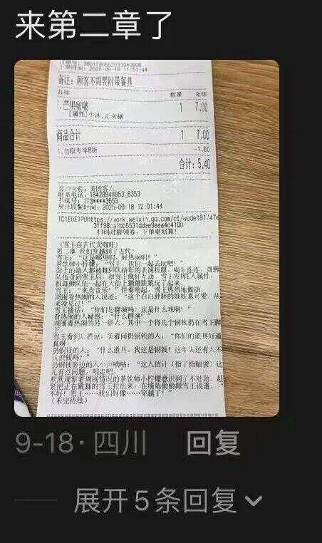 另有工作人员透露,小票上是否印有小说内容可由门店自行设置,如收银纸余量不足时可能不显示该段落。上述工作人员均表示,不清楚今后是否还会推出其他小说。
