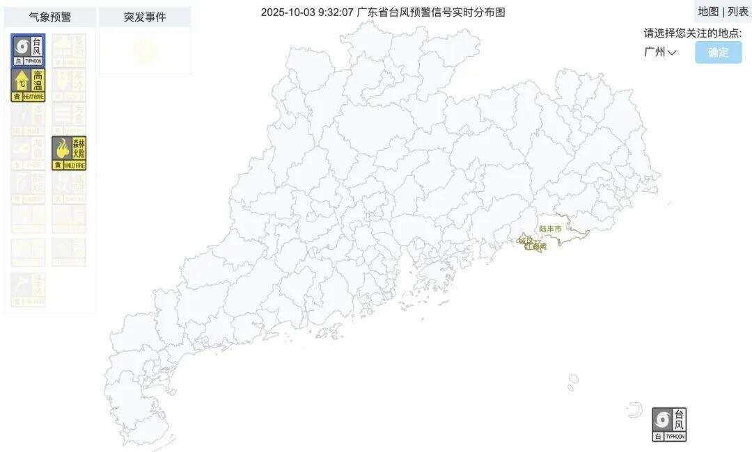 由于台风“麦德姆”逐渐靠近广东沿海地区,广东自10月3日起,各地陆续开始发布台风预警信号。截至10月3日9时32分,汕尾城区、红海湾、陆丰等地,已经发布台风白色预警信号。