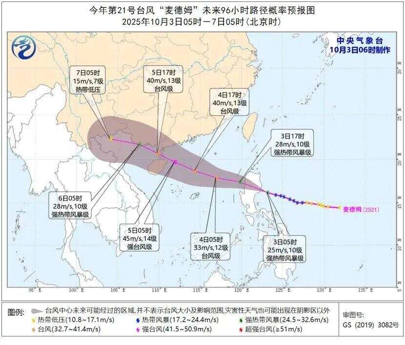 中央气象台10月3日9时对台风“麦德姆”的路径和强度预报