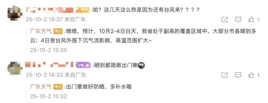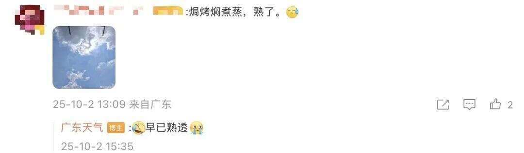 昨天(10月2日),广东多地艳阳高照,热力满满。有网友表示:晒到不敢出门;又是台风来临前的常规操作,晴热暴晒无限供应。