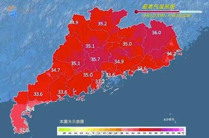 未来10天,除新疆北部外,全国大部地区气温将会偏高,其中江淮、江南、华南等地偏高明显,10月3日至9日江南中东部、华南东部等地部分地区还将有35~38℃的高温天气,江南局地气温将接近历史同期极值。