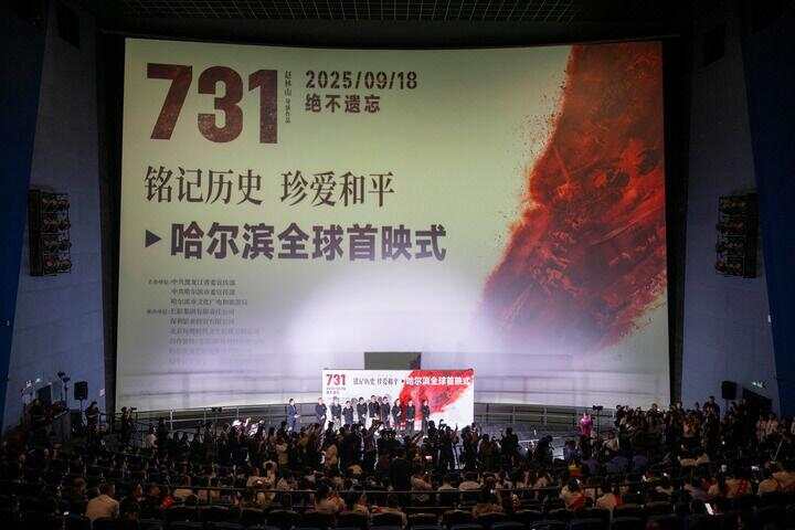 这是2025年9月17日在哈尔滨市哈东万达影城拍摄的《731》全球首映仪式现场。新华社记者 张涛 摄