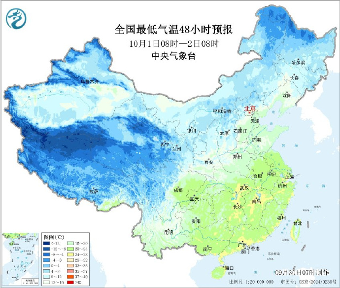 10月1日至4日将有两股弱冷空气,新疆北部、内蒙古东北部、黑龙江等地部分地区将有4至8℃降温,新疆北部将有明显雨雪天气。而5日至7日,受较强冷空气影响,全国大部气温降下降4至8℃。