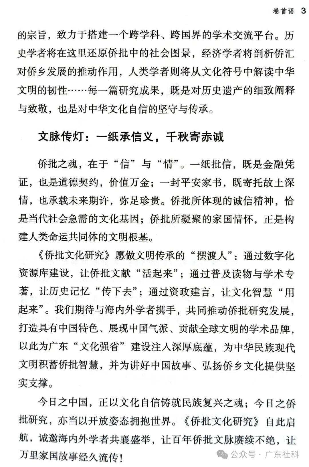 为更好地落实习近平总书记的重要讲话精神,凝聚侨心,发挥侨力,助力广东文化强省建设和高质量发展,《侨批文化研究》集刊应运而生。