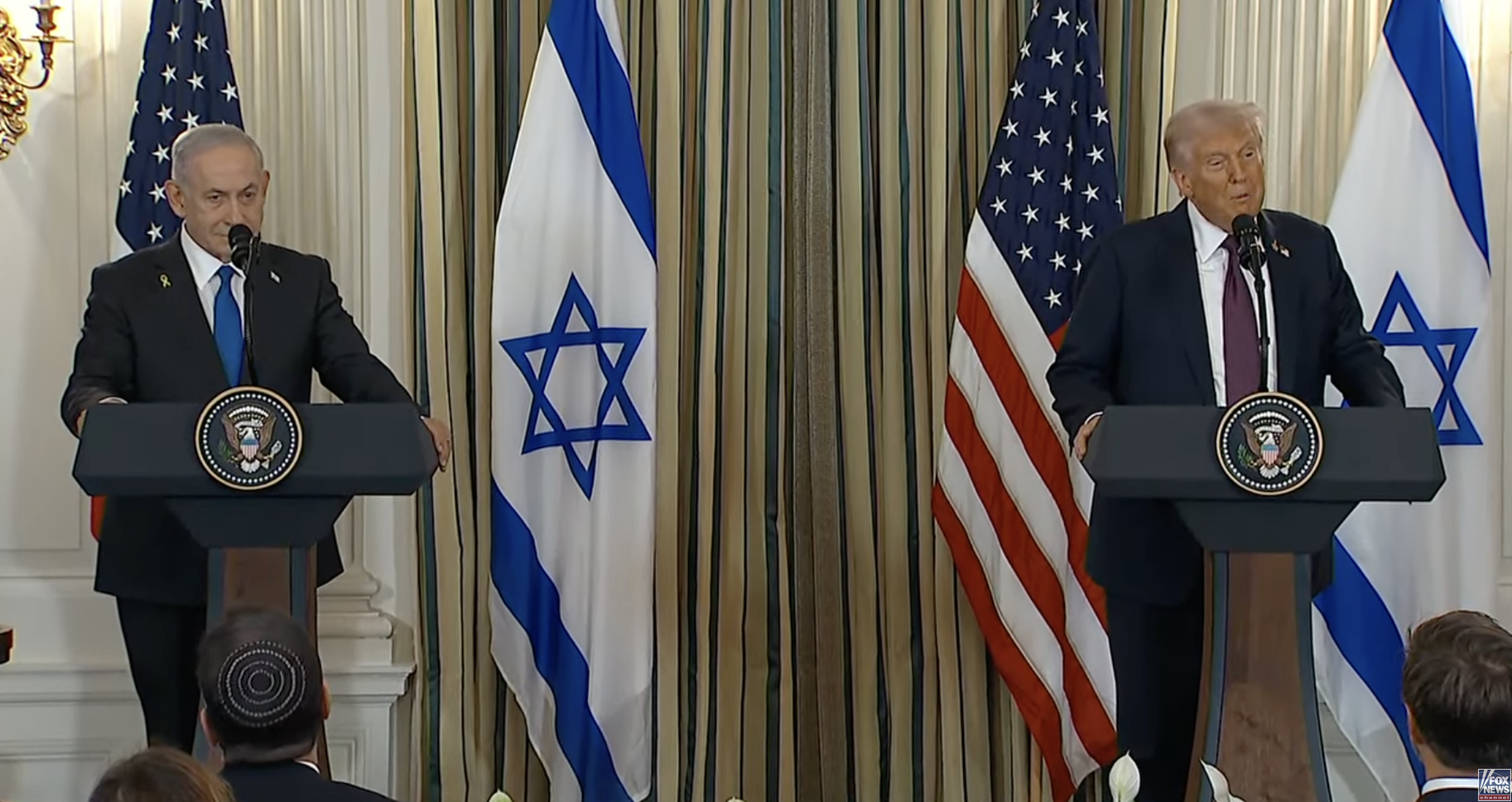 当地时间9月29日,美国总统特朗普与以色列总理内塔尼亚胡举行双边会晤。特朗普称,内塔尼亚胡接受了他提出的加沙和平计划,已非常接近达成协议结束加沙地带冲突。特朗普表示,如果哈马斯接受加沙和平计划,将要求释放所有人质。