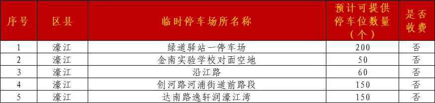 金平共开放20个临时停车场(约1296个停车位):