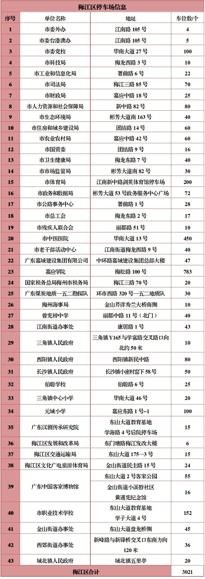据梅州市文明办消息,2025年国庆期间,梅州城区部分机关事业单位停车场,共计3840个停车位将对外免费开放。