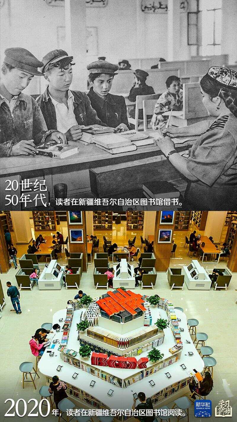 我们选取成就展上的一组照片,通过新旧对比,用鲜活的事实展现新疆取得的辉煌成就,一起感受翻天覆地的发展变化。