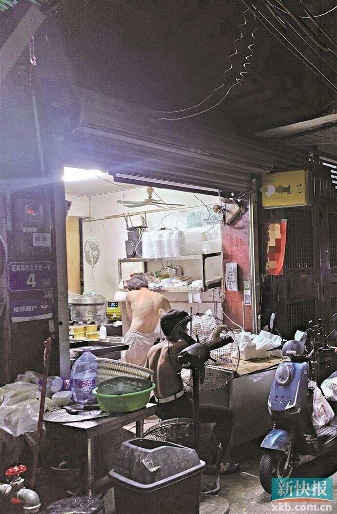 ■×金汤·炖足四小时(天河店)内,店员光着膀子制作餐食。
