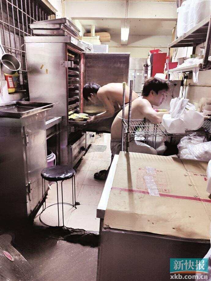 油污遍地食材乱堆,员工光膀制作餐食