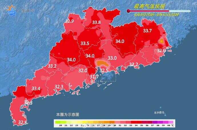 ◆预计10日,广东南部沿海市县(雷)阵雨局部暴雨转多云,其余市县多云,有分散(雷)阵雨局部大雨。最高气温:粤北市县33~35℃,其余市县30~33℃。