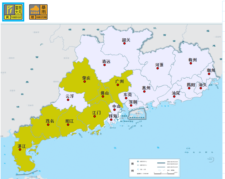 截至9月10日13时47分,越秀、海珠、荔湾、天河、白云、花都、番禺、增城等区,已经发布雷雨大风黄色预警信号。预计雷雨大风影响期,可能与市民午后返岗、中小学生午后返校时间撞期,请市民留意天气变化,做好防御。