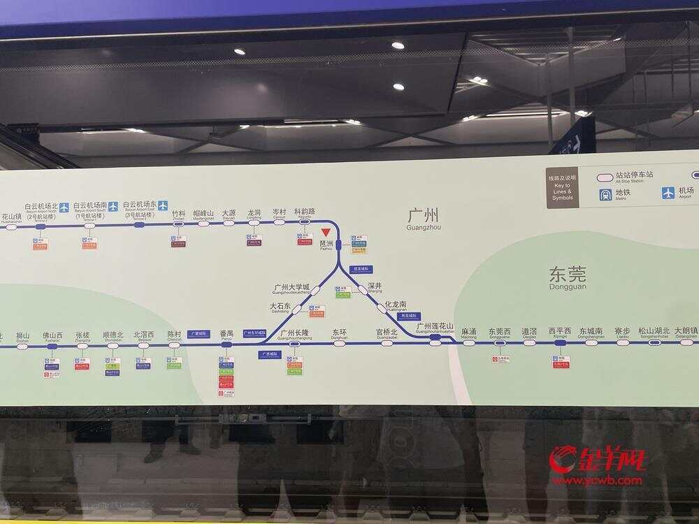 广州东环城际铁路(番禺-白云机场北)、琶莲城际铁路即将在全运会之前运营,并将与广惠、广肇、广清、广州东环城际铁路(白云机场北-花都)贯通运营。届时,广东城际将开行8条交路,每日开行3班“番禺至白云机场南”单向直达列车,全程约为31分钟。