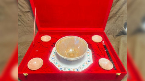报道称,莫迪为石破茂挑选的这套礼物包括一个大的棕色月光石碗和四个小碗(上图),灵感源自日本传统的丼饭与荞麦面饮食习俗。此外,莫迪还为石破佳子准备了一条手工编织的羊绒披肩,并装在一个精美的手绘纸盒里。