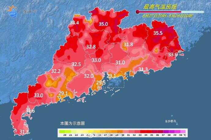 ◆28-29日,广东中南部市县多云到阴天,有中到强雷雨,局部(大)暴雨,其余市县多云,有分散(雷)阵雨,局地大雨。最高气温:中北部市县33~35℃,其余市县30~33℃。