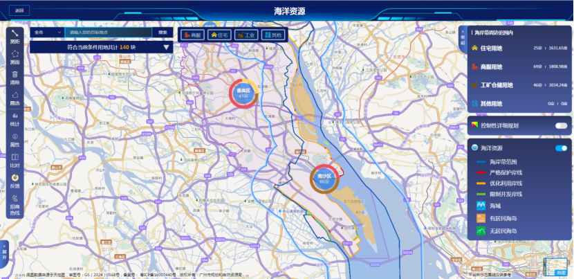 通过叠合海洋资源信息,无缝对接陆海空间资源,精准匹配海洋产业发展需求,为涉海企业提供全面专业的规划和用地用海数据支持,为广州海洋产业布局与招商引资提供有力支撑。