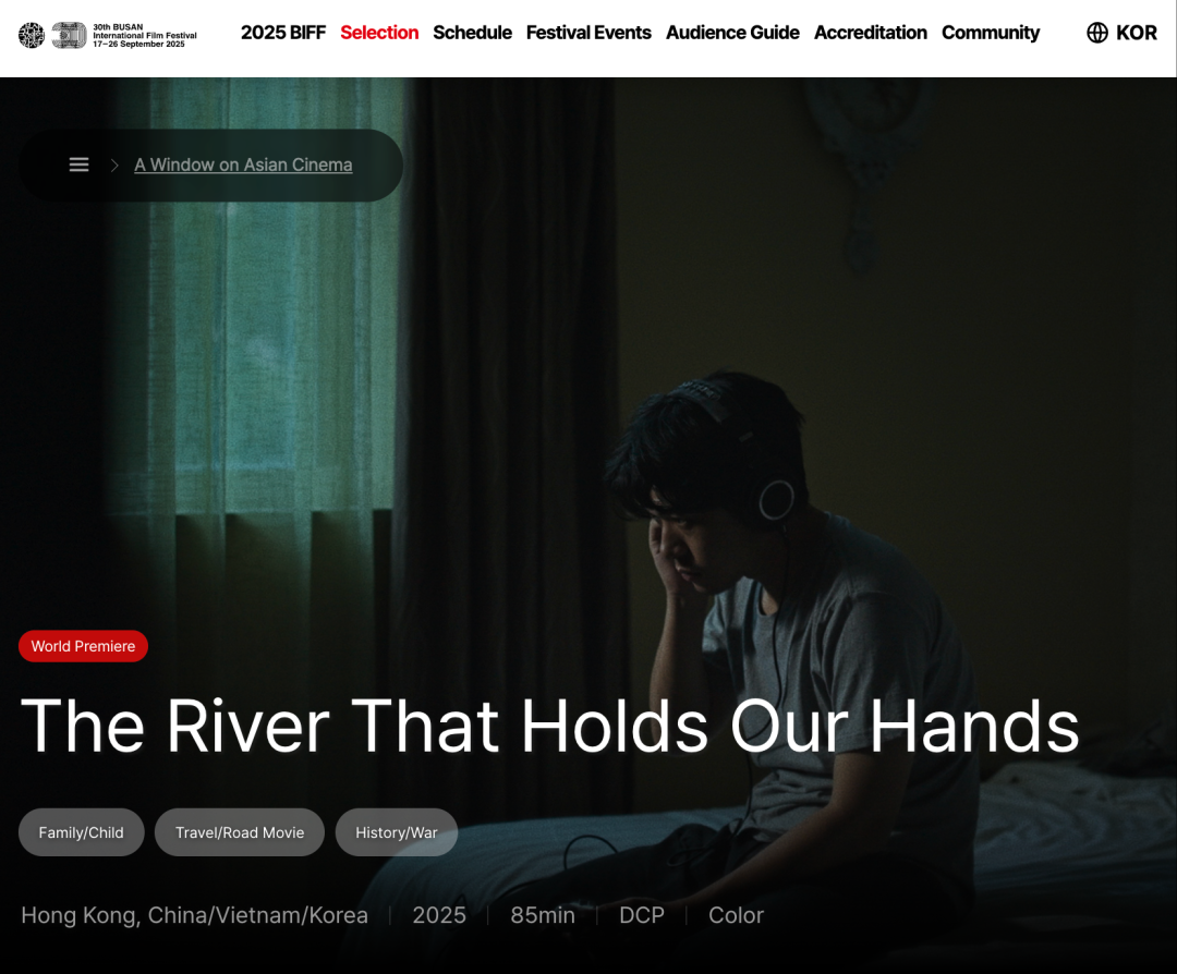 今日,2025年第30届釜山国际电影节(30th BUSAN International Film Festival)正式官宣入围名单,山海计划青年导演陈坚杭首部剧情长片《拥啊拥 ong6 a7 ong6》(The River that Holds Our Hands)入选亚洲电影之窗单元(A Window on Asian Cinema)。