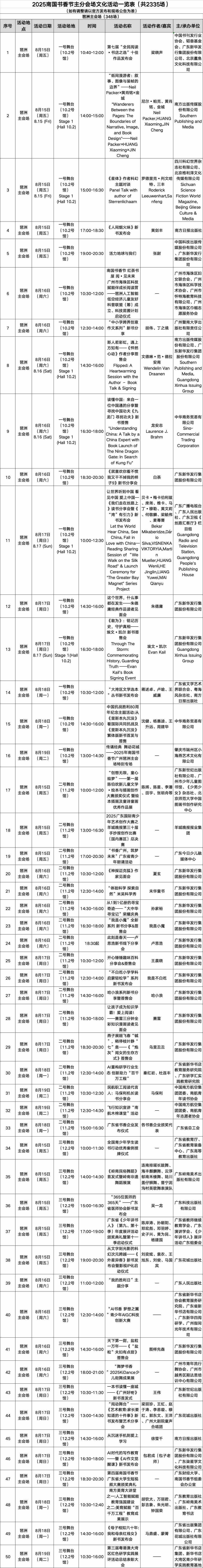 书页之间,阅见世界!8月15日至19日,2025南国书香节将在中国进出口商品交易会展馆B区启幕。日前,2025南国书香节文化活动总表正式发布!