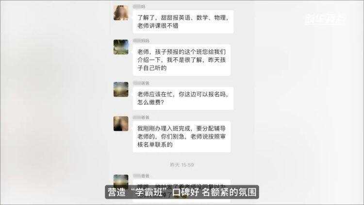 经过几天交流,助教老师开始推介其所在培训机构重点打造的“清北学霸班”,称其为“市面上能接触到最好的教育资源”,随后将记者拉入报名群中,并持续通过语音电话、留言等方式劝说记者报名。