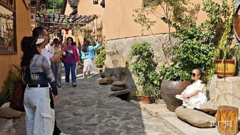 游客在田铺大塆游玩拍照(央广网发 余俊 摄)