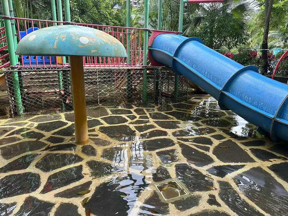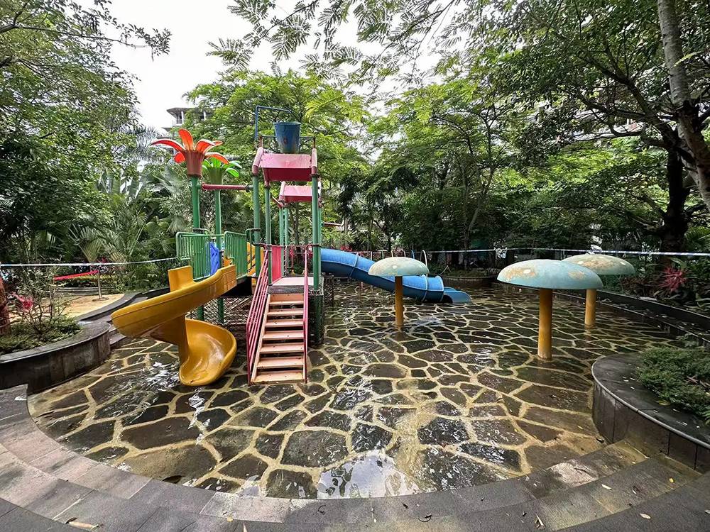 “儿童水寨现场没有救生员或安全管理员。”林静记得很清楚,只是在路过户外戏水池时见到过安全员,对方提醒她“没带泳帽不能下水游泳”。水寨附近只有一块“温馨提示”的牌子,写明该设施仅供2—8岁儿童游玩,建议家长在场照看,以确保安全。