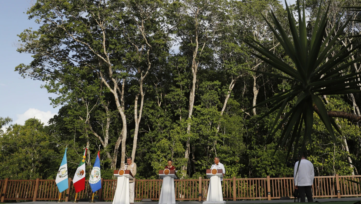 三国领导人还讨论了延长墨西哥正在修建的“玛雅列车”铁路。该项目计划将墨西哥坎昆等旅游胜地与热带雨林深处的玛雅文明遗迹连接起来。危地马拉总统阿雷瓦洛说,“期待‘玛雅列车’通往危地马拉,最终通到伯利兹,这是我们共同的愿景”,但这条铁路不能经过任何雨林保护区域。