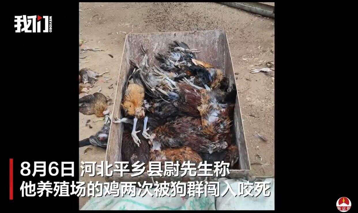 8月6日,河北平乡县尉先生称,他养殖场内的鸡两次被狗群闯入咬死,共被咬死600只鸡。监控显示,狗群系从破损的围栏处闯入。尉先生称,他已把破损的围栏修复,将去报警求助。