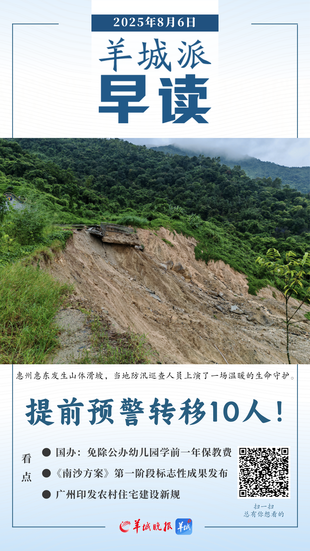 江河洪水快速上涨!广东将防汛应急响应提升至Ⅱ级。详情--> 广东3处高速、6处国省道、25处农村公路正全力抢通。详情--> 暴雨中的生命守护!广东救援现场一线直击。详情-->10人转移后惠州惠东一地突发山体滑坡,记者深入现场了解背后故事。详情-->羊晚快评|两次“零伤亡”,绝不是偶然。详情-->