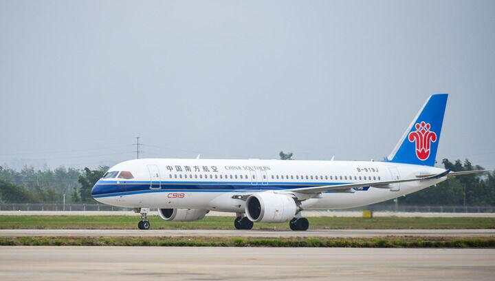 2024年12月11日,由C919执飞的中国南航CZ6786航班在海口美兰国际机场降落,国产大飞机C919在海南的商业飞行“首秀”顺利完成。新华社记者 杨冠宇 摄
