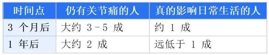 A:大多数人,6 – 12个月内疼痛越来越轻,最后“想起来才隐隐痛”。